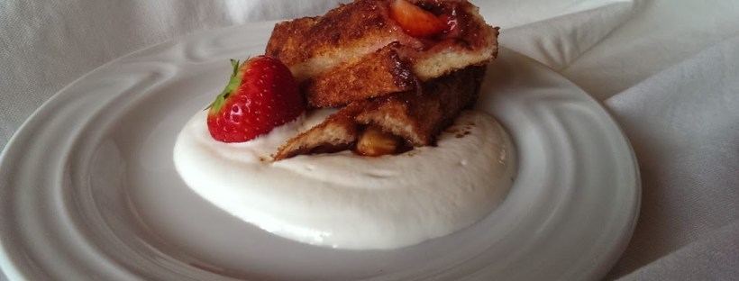 Z chleba orežeme kôrky a striedku rozvaľkáme aby sa nám toasty lepšie zatáčali. Každý jeden jemne natrieme nutellou a vložíme zopár kúskov jahôd. Toasty opatrne zrolujeme a môžeme zafixovať špáratkom ale mali by držať vďaka nutelle. V miske vyšľaháme vajíčka s trochou mlieka a na panvičke rozohrejeme olej. Toasty obalíme vo vajíčku a vypražíme. Odkladáme ich na tanier vystlaný kuchynským papierom aby sme ich zbavili zbytočného tuku a posypeme škoricovým cukrom. Jogurtovú omáčku pripravíme zmiešaním bieleho jogurtu a vanilkového cukru a môžeme servírovať. Tieto vynikajúce raňajky podávame so šálkou dobrej kávy 🙂 Dobrú chuť!